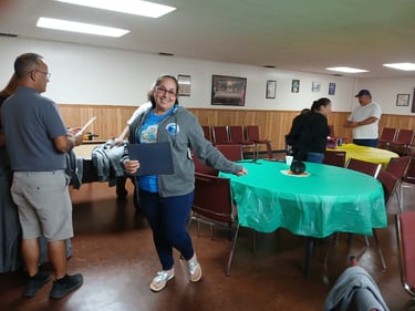 Amidst lively conversations and shared laughter, the appreciation extended beyond culinary delights. The atmosphere shifted to spirited competition with an engaging round of Bingo! Volunteers enthusiastically participated, with prizes awarded and plenty of good-natured fun as some struggled (and others excelled!) at keeping pace with the rapid calls. Smiles and laughter filled the room, highlighting the strong camaraderie among the pantry's dedicated team.